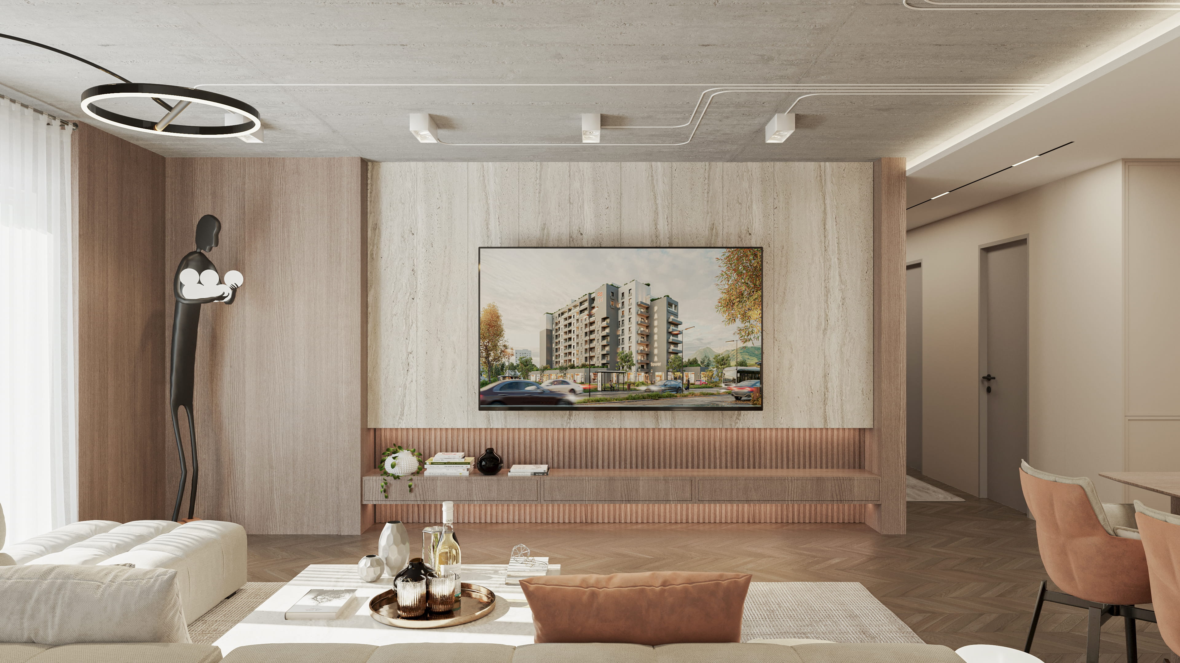 Apartamenti me dy dhoma gjumi është projektuar për të ofruar komoditet dhe funksionalitet maksimal. Zona e ndenjës dhe kuzhina janë të organizuara në mënyrë praktike, duke krijuar një ambient të rehatshëm për jetesë dhe pritje. Dhomat e gjumit janë të ndara nga zona e ditës për privatësi më të madhe. Materialet cilësore dhe ndriçimi natyral e bëjnë këtë apartament një zgjedhje të shkëlqyer për familje të vogla ose investim afatgjatë.